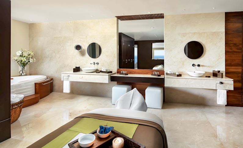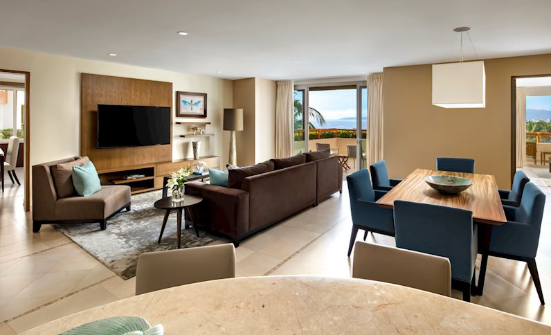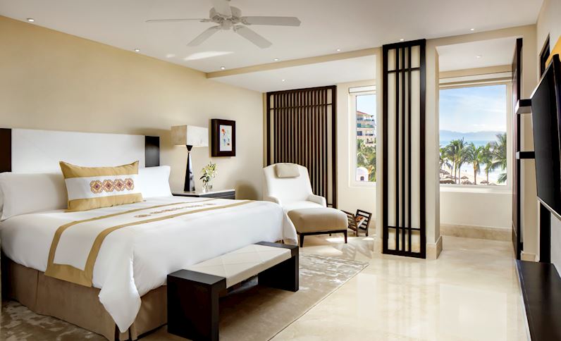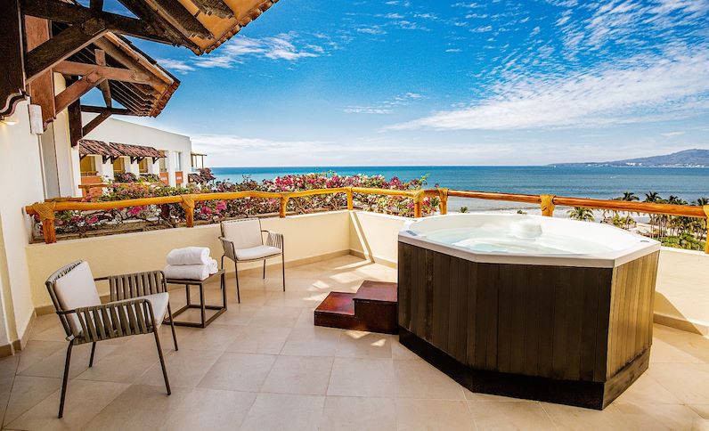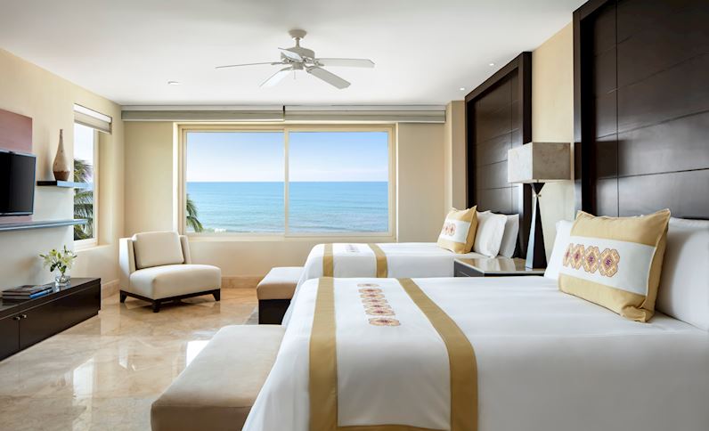 Grand Velas Riviera Nayarit is a resort nestled along the Pacific Coast of Mexico, surrounded by the blue waters of Banderas Bay, golden beaches, Sierra Madre Mountains and green fairways.