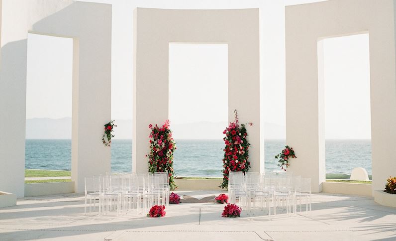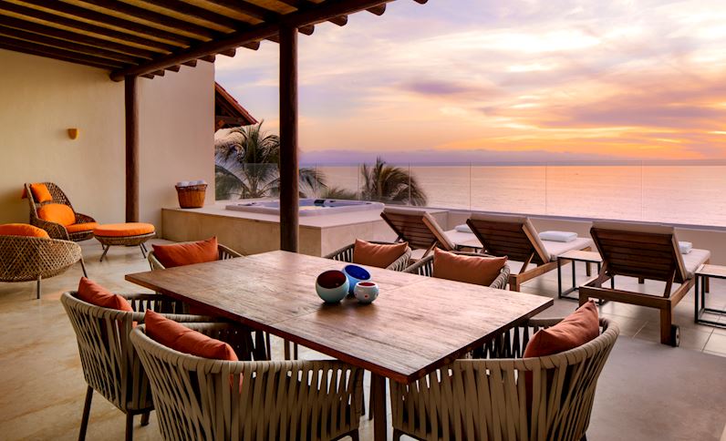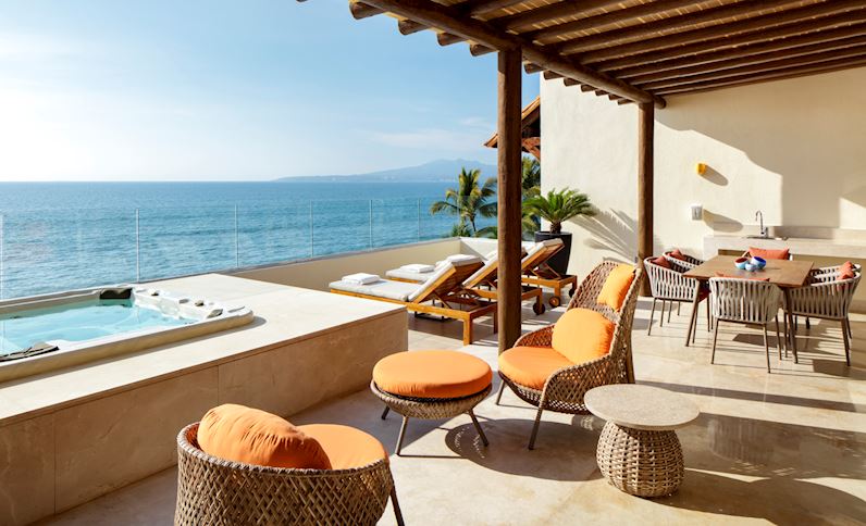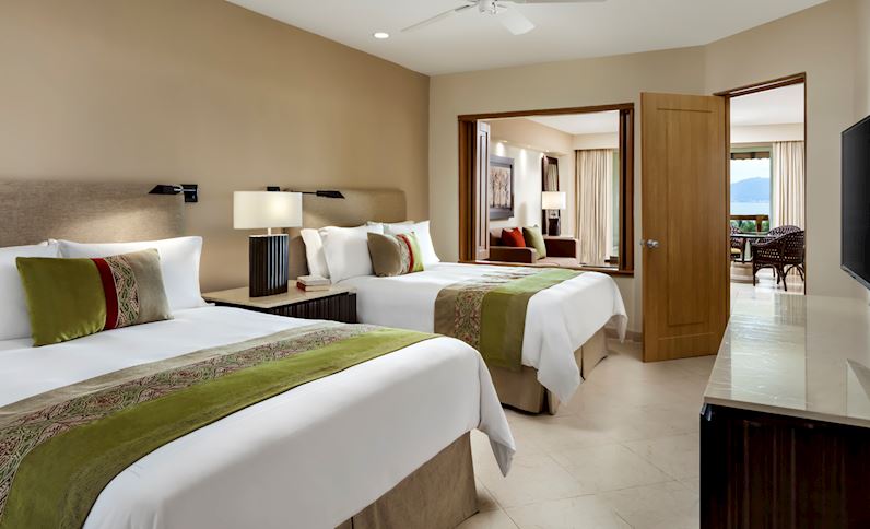 Grand Velas Riviera Nayarit is a resort nestled along the Pacific Coast of Mexico, surrounded by the blue waters of Banderas Bay, golden beaches, Sierra Madre Mountains and green